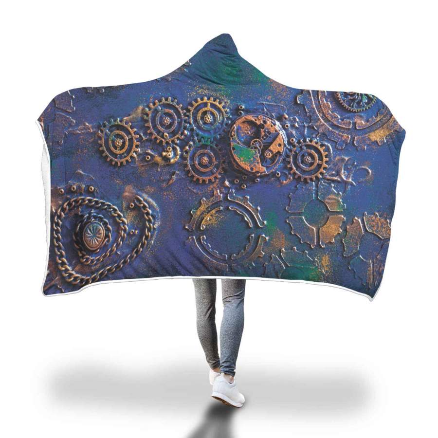 Blue Rust Steampunk Hooded Blanket