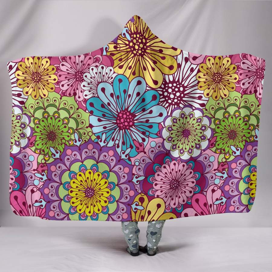 • Hooded Blanket - Flower Pattern Hooded Blanket