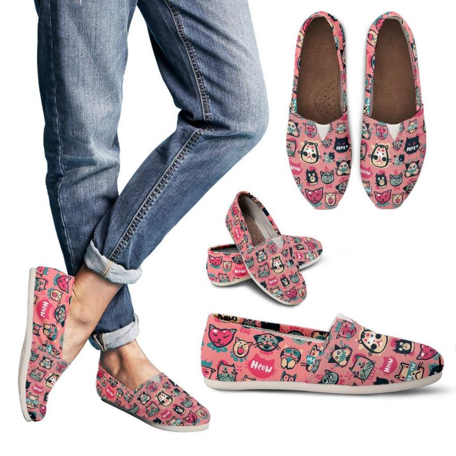 • Womens Casual Shoes - Canvas - Pink Meow Cat Casual Shoes