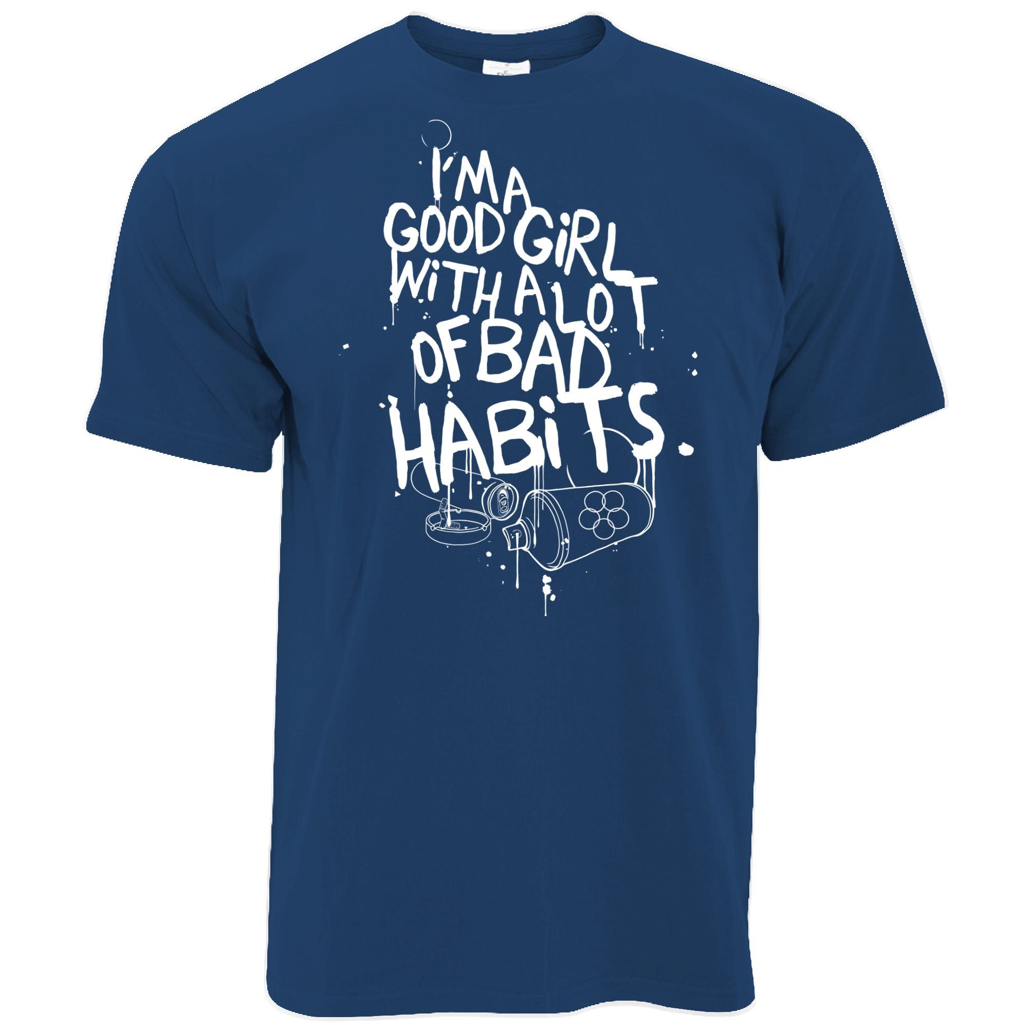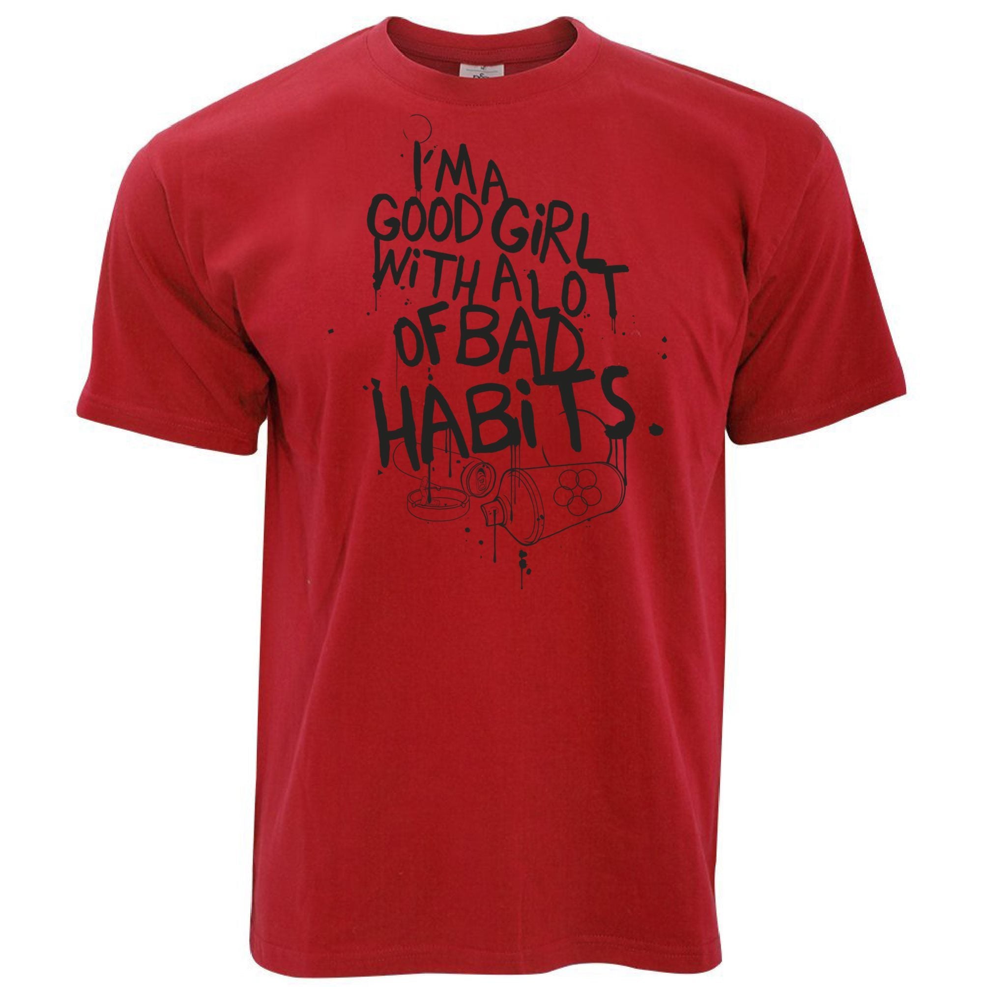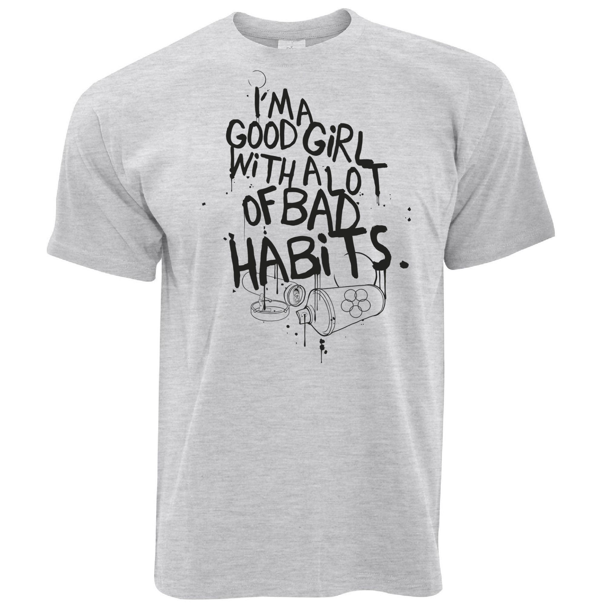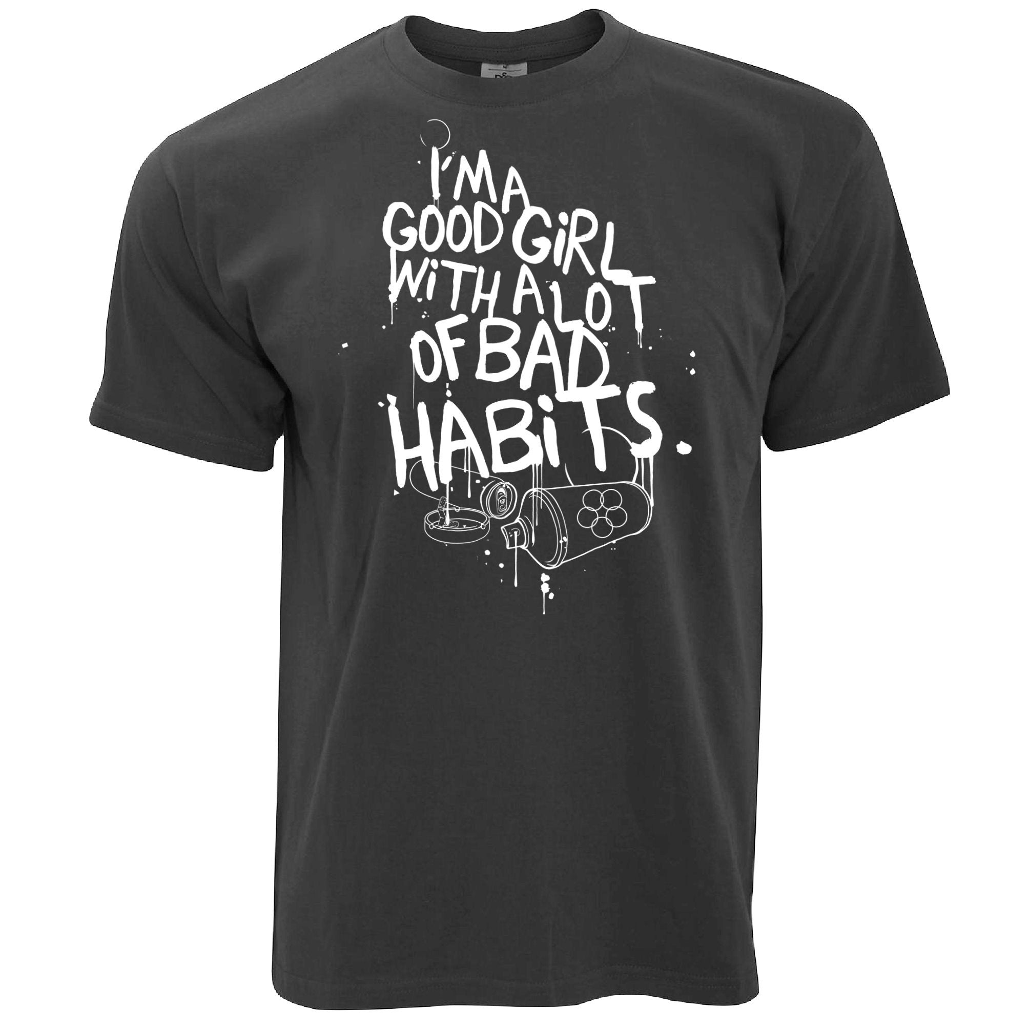 Are you looking for some special gift Slogan T Shirt I’m A Good Girl With Lots Of Bad Habits for your friends, your father, your mother, son, boyfriend, girlfriend? We have this idea for you. This product Slogan T Shirt I’m A Good Girl With Lots Of Bad Habits is perfect for you. Our T-shirt made of ringspun cotton for smoothness and body, and added rayon and polyester for extra stretch, drape, and breathability, this will be your new favorite t-shirt.