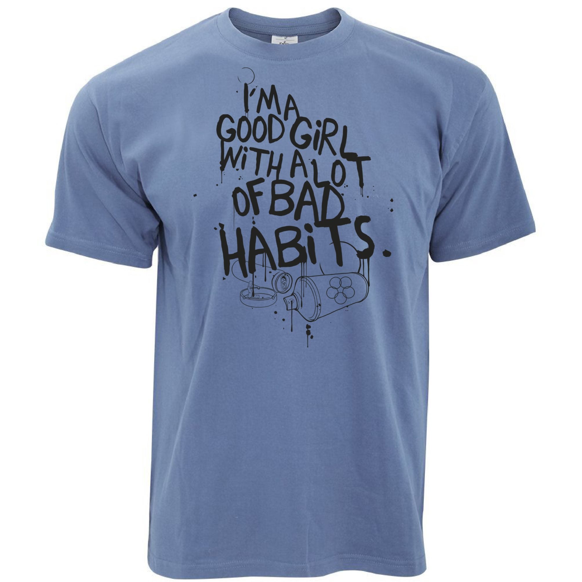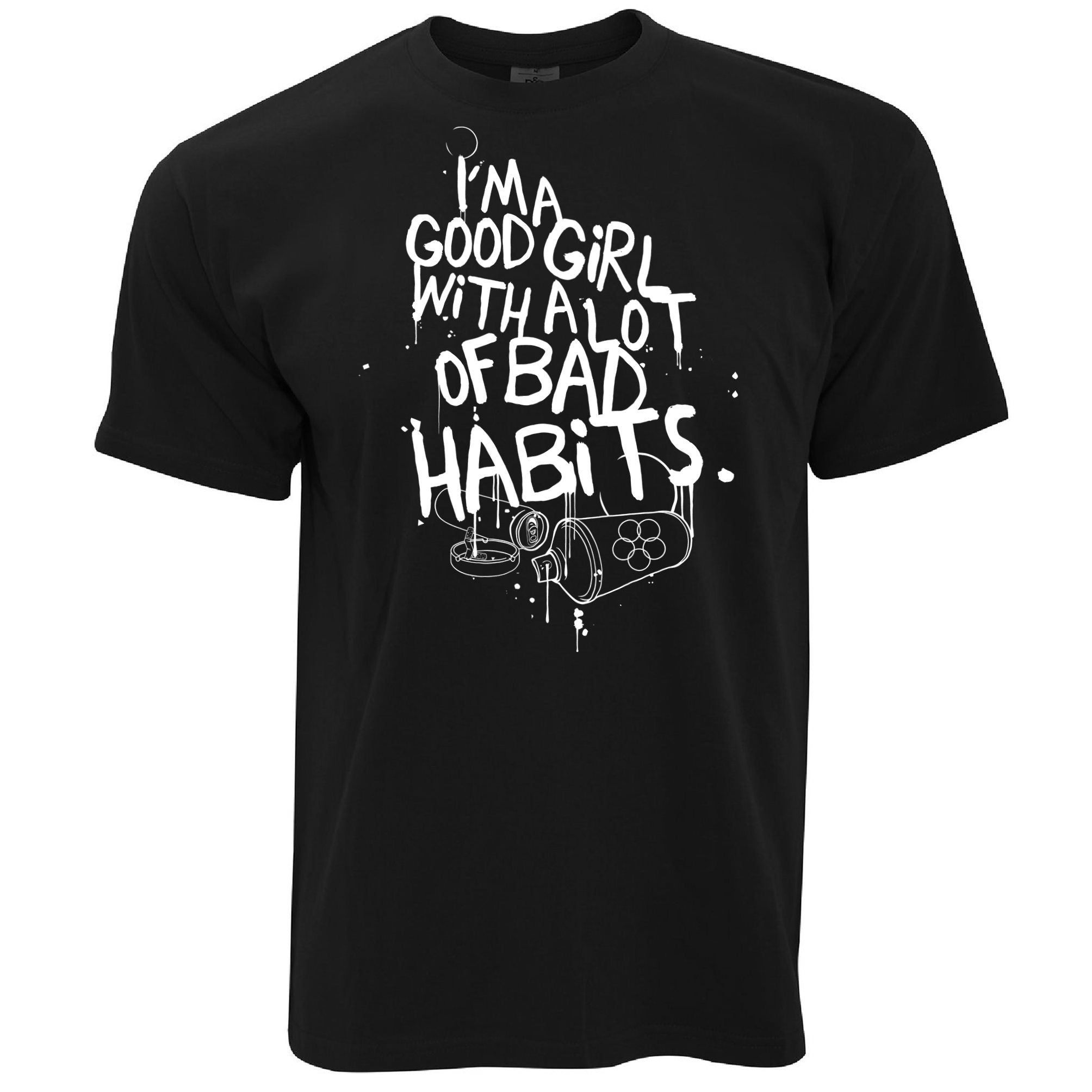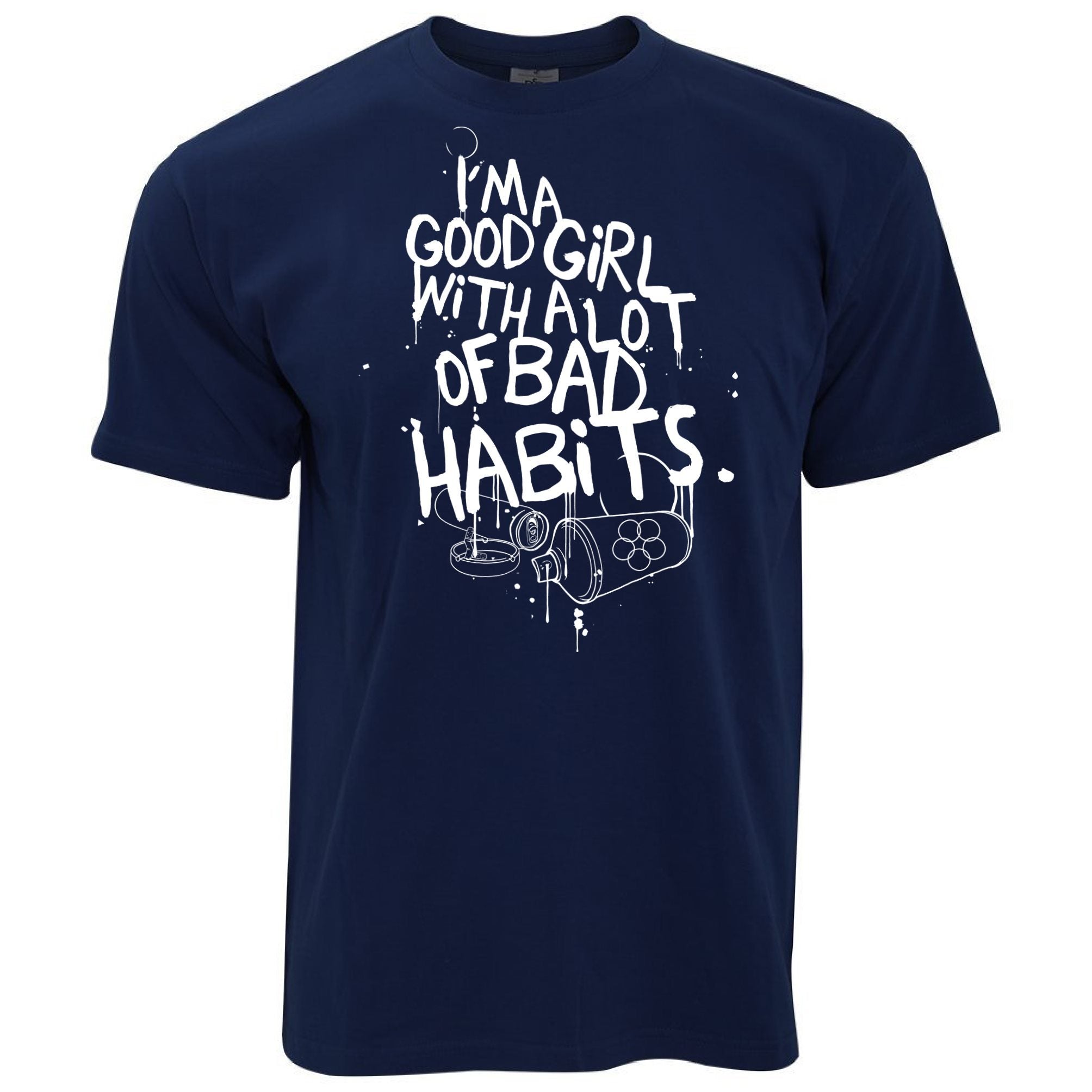 Are you looking for some special gift Slogan T Shirt I’m A Good Girl With Lots Of Bad Habits for your friends, your father, your mother, son, boyfriend, girlfriend? We have this idea for you. This product Slogan T Shirt I’m A Good Girl With Lots Of Bad Habits is perfect for you. Our T-shirt made of ringspun cotton for smoothness and body, and added rayon and polyester for extra stretch, drape, and breathability, this will be your new favorite t-shirt.
