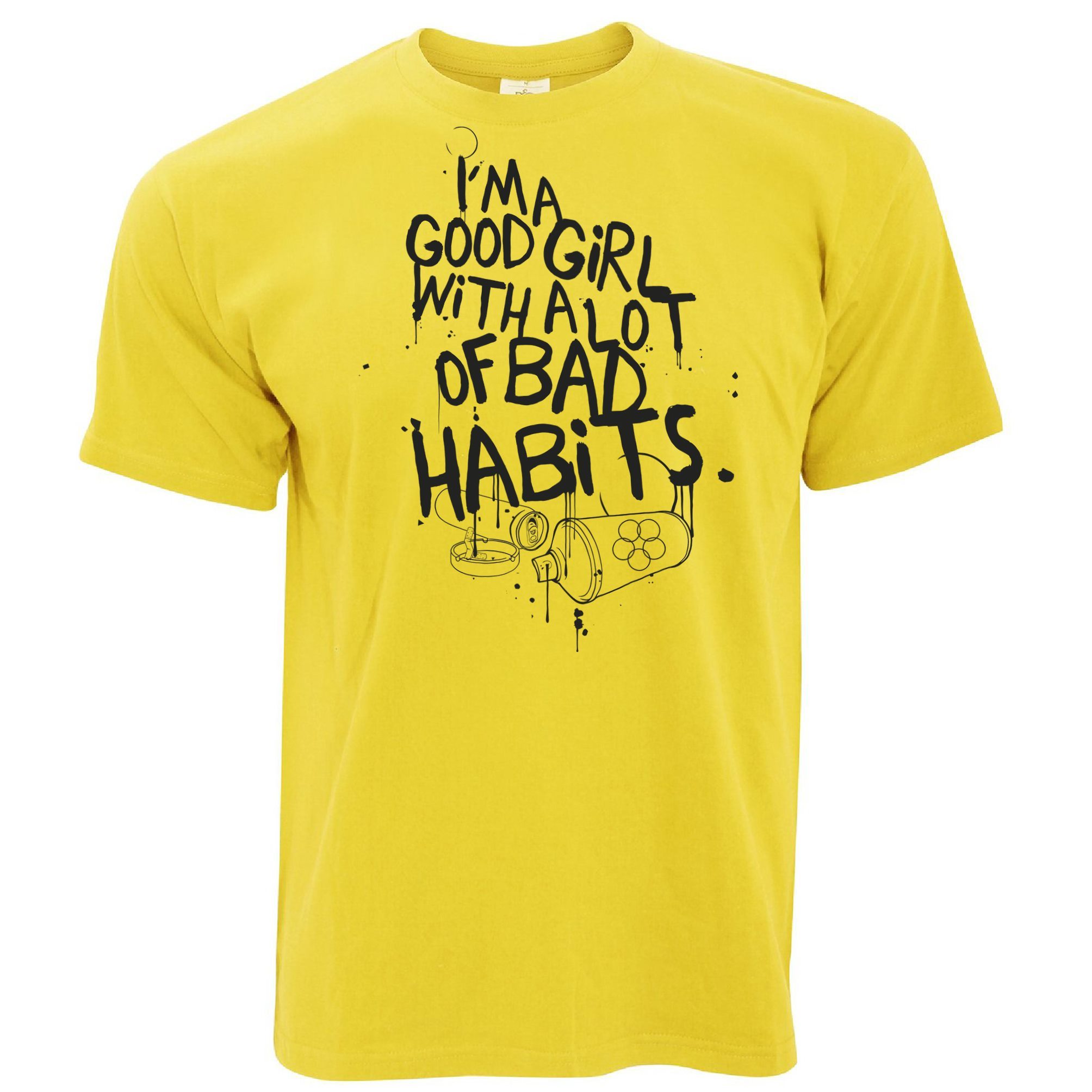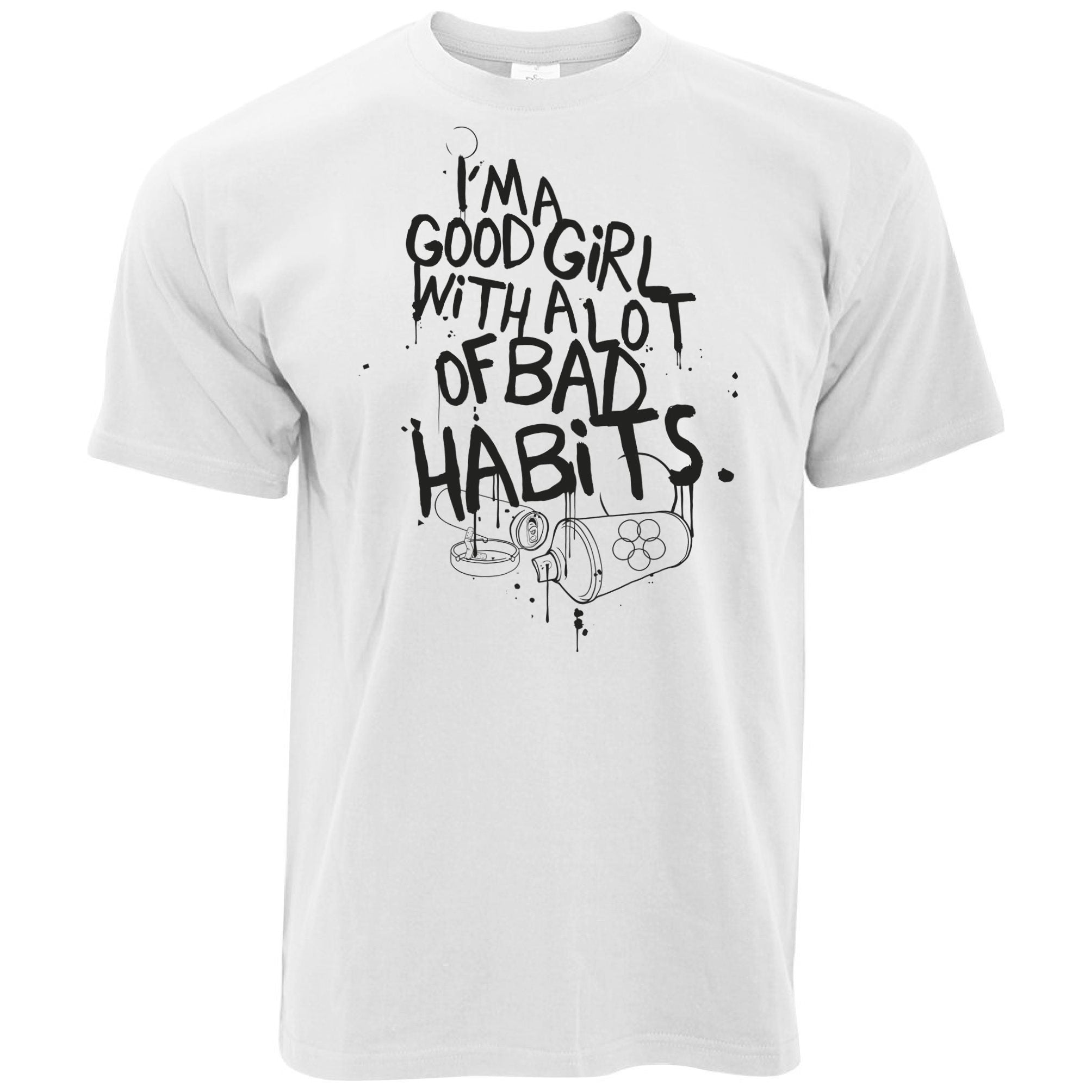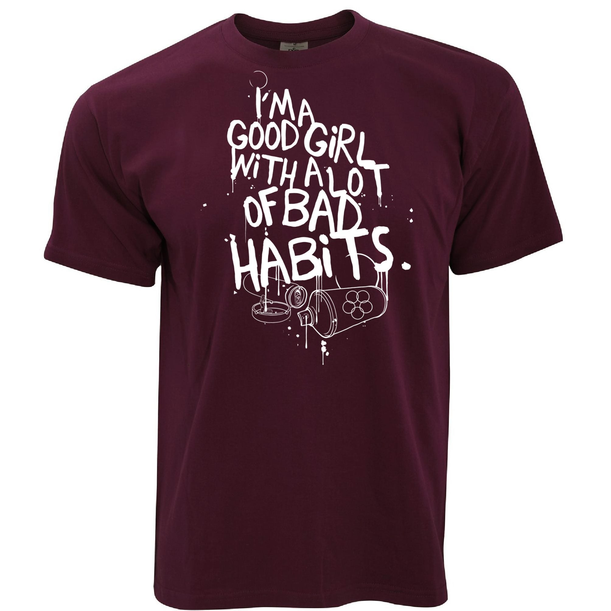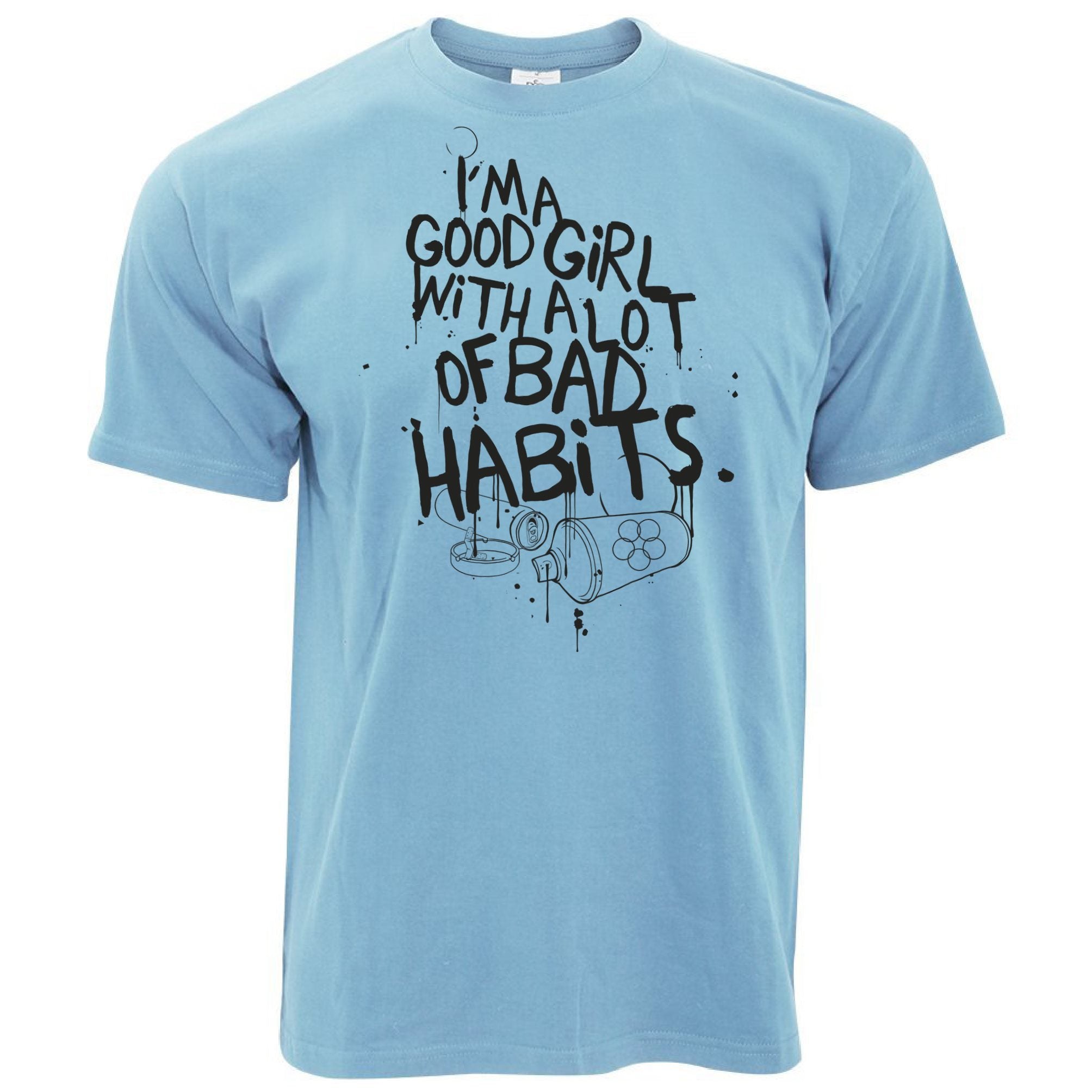 Are you looking for some special gift Slogan T Shirt I’m A Good Girl With Lots Of Bad Habits for your friends, your father, your mother, son, boyfriend, girlfriend? We have this idea for you. This product Slogan T Shirt I’m A Good Girl With Lots Of Bad Habits is perfect for you. Our T-shirt made of ringspun cotton for smoothness and body, and added rayon and polyester for extra stretch, drape, and breathability, this will be your new favorite t-shirt.