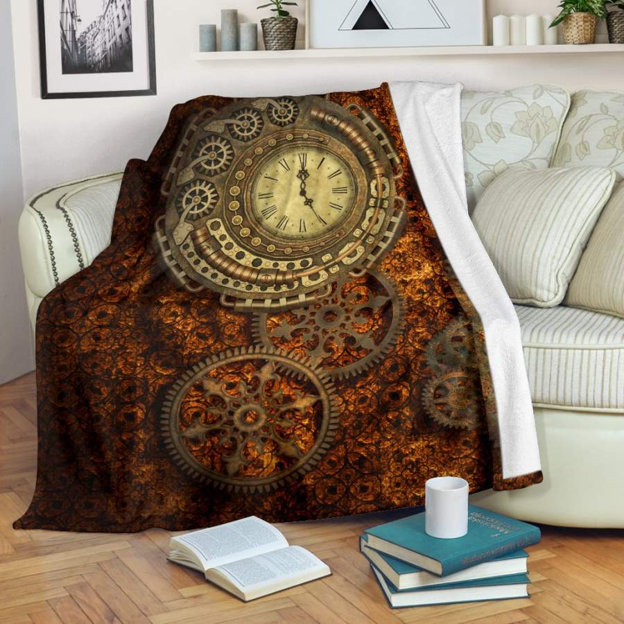 Style: Premium Blanket - Steampunk Bronze Clock Throw Blanket