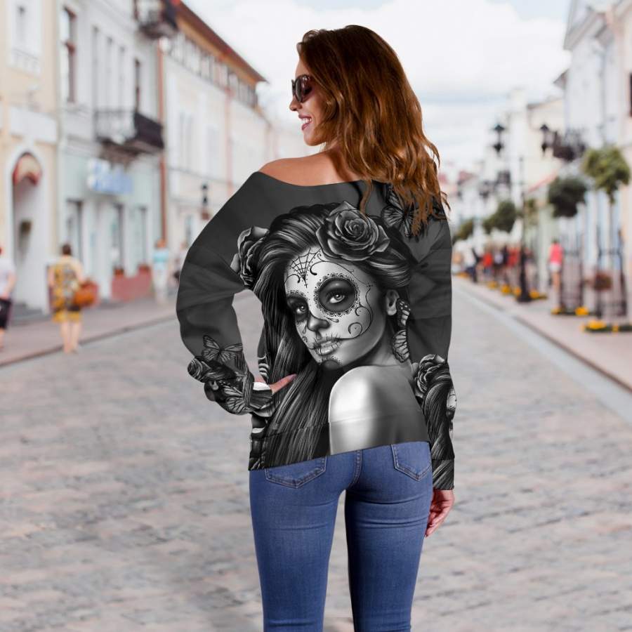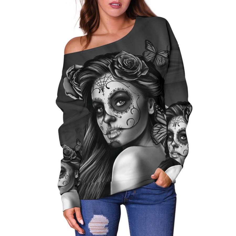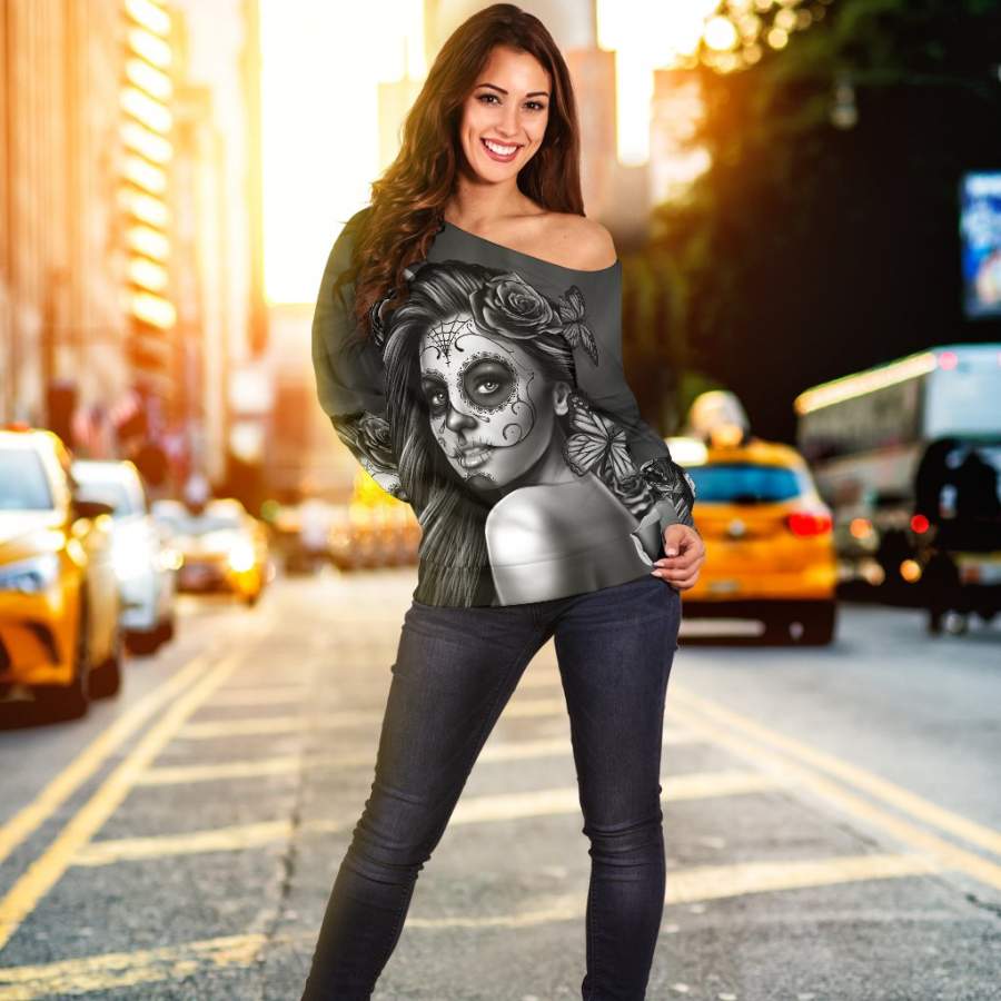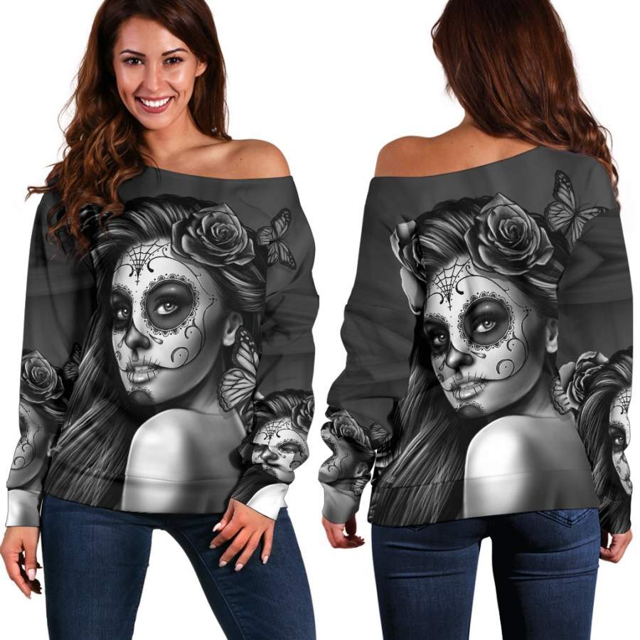 Are you looking for some special gift Black Calavera Off Shoulder Hoodie for your friends, your father, your mother, son, boyfriend, girlfriend? We have this idea for you. This product Black Calavera Off Shoulder Hoodie is perfect for you. Our T-shirt made of ringspun cotton for smoothness and body, and added rayon and polyester for extra stretch, drape, and breathability, this will be your new favorite t-shirt.