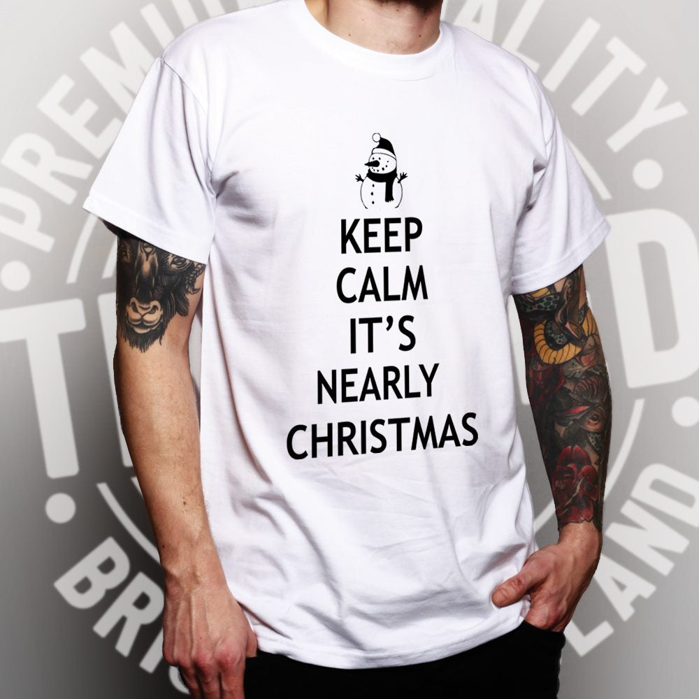 Are you looking for some special gift Christmas T Shirt Keep Calm It’s Nearly Xmas for your friends, your father, your mother, son, boyfriend, girlfriend? We have this idea for you. This product Christmas T Shirt Keep Calm It’s Nearly Xmas is perfect for you. Our T-shirt made of ringspun cotton for smoothness and body, and added rayon and polyester for extra stretch, drape, and breathability, this will be your new favorite t-shirt.