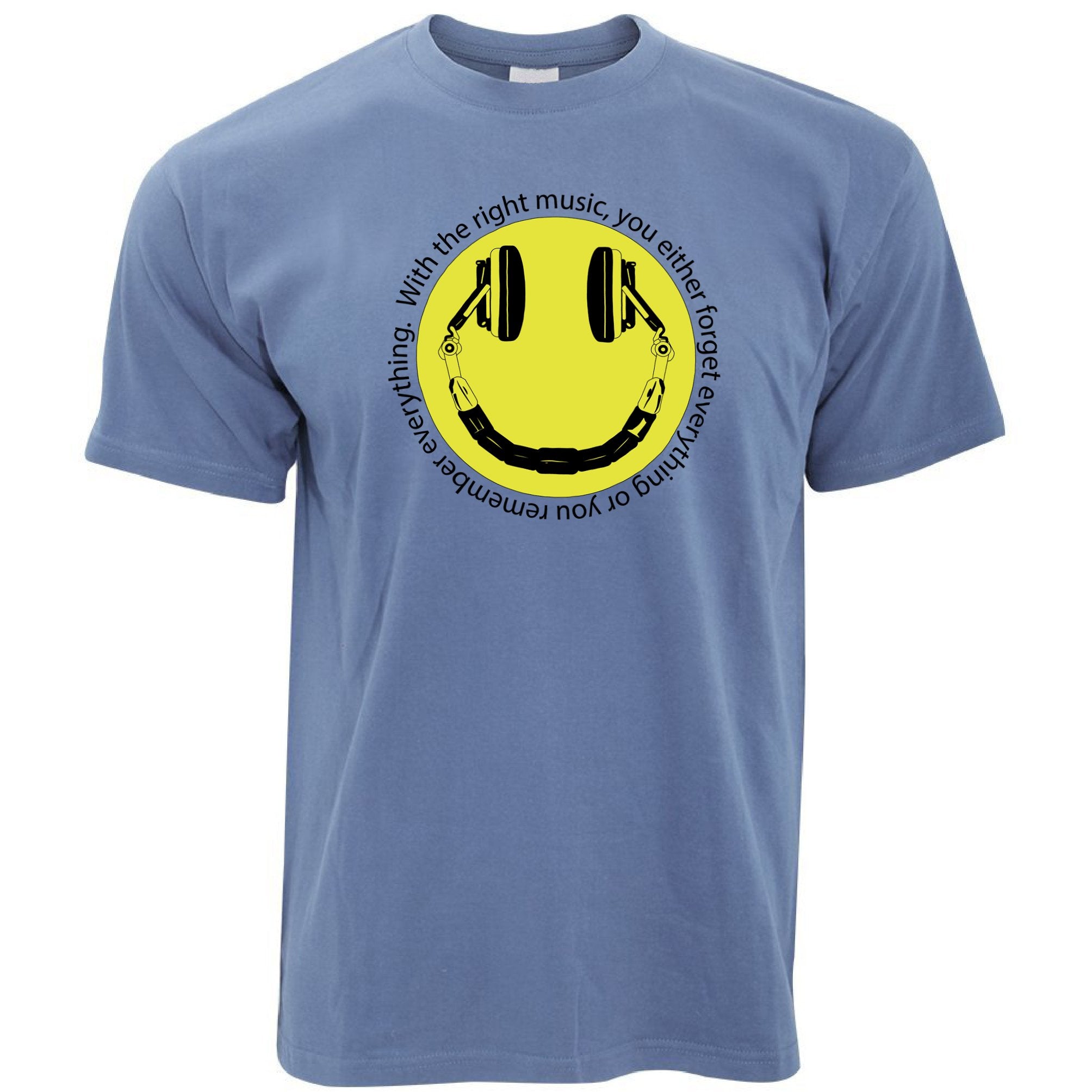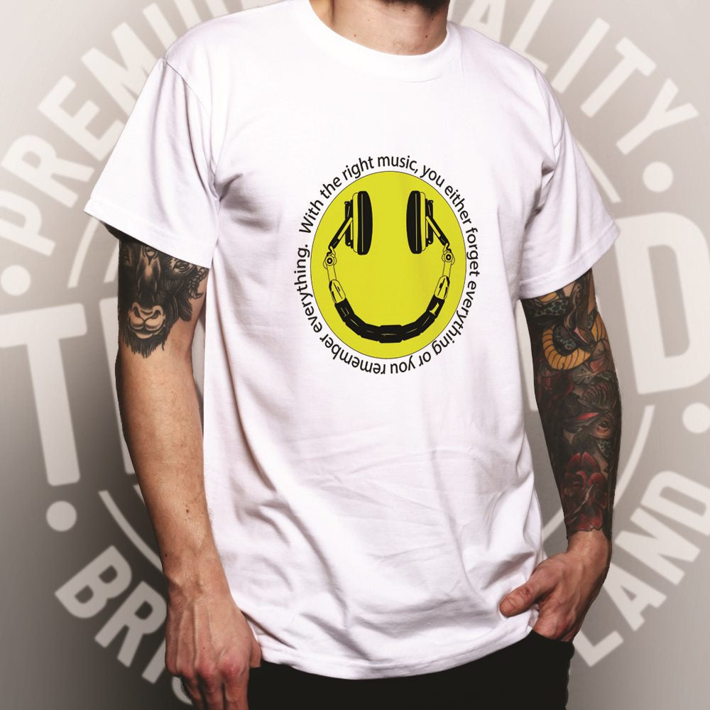 Are you looking for some special gift Headphones T Shirt Smile Face With The Right Music for your friends, your father, your mother, son, boyfriend, girlfriend? We have this idea for you. This product Headphones T Shirt Smile Face With The Right Music is perfect for you. Our T-shirt made of ringspun cotton for smoothness and body, and added rayon and polyester for extra stretch, drape, and breathability, this will be your new favorite t-shirt.